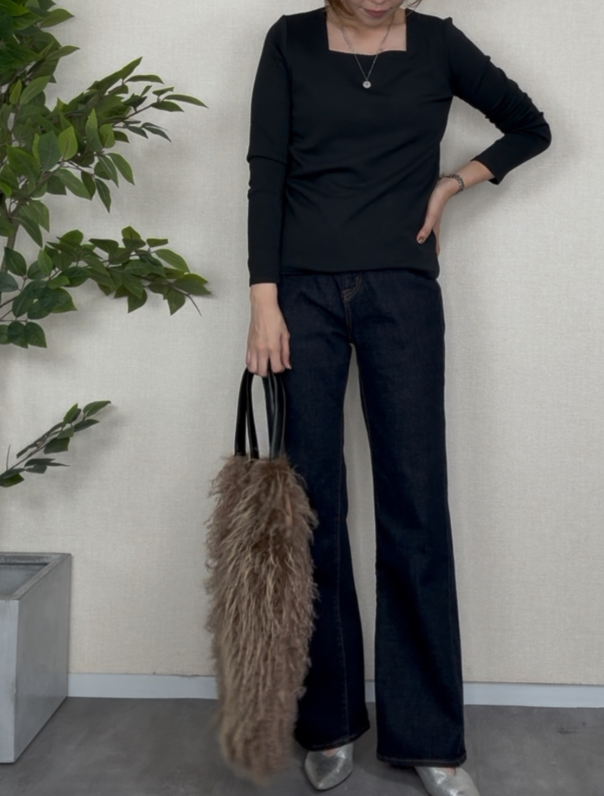 デコルテをすっきりと見せてくれお洋服が綺麗にきれるスクエア!