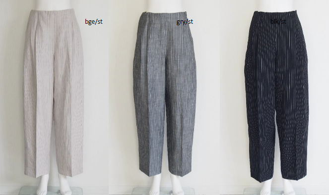 前ウエストはすっきりと仕立てつつ、後ろウエストにはゴムを入れ、見た目を損なわず快適な穿き心地を実現しています。