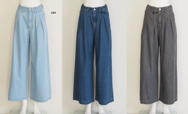 ワイドでゆったりとしたシルエットはキープしつつ、ウエストのツータックでお腹周りをカモフラージュ。
