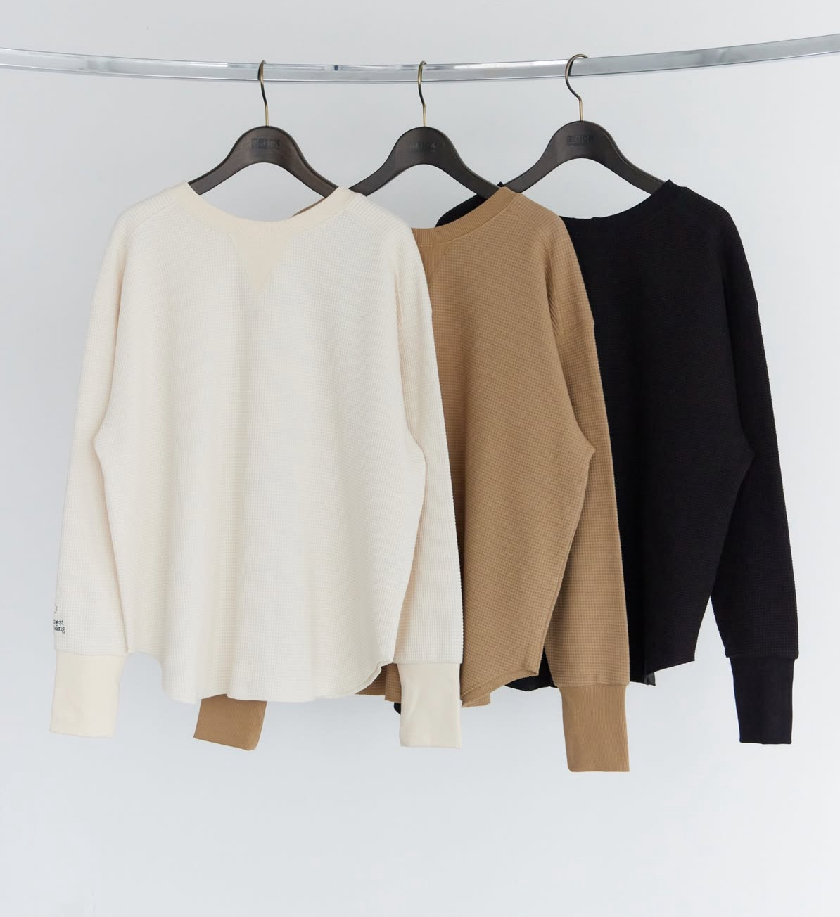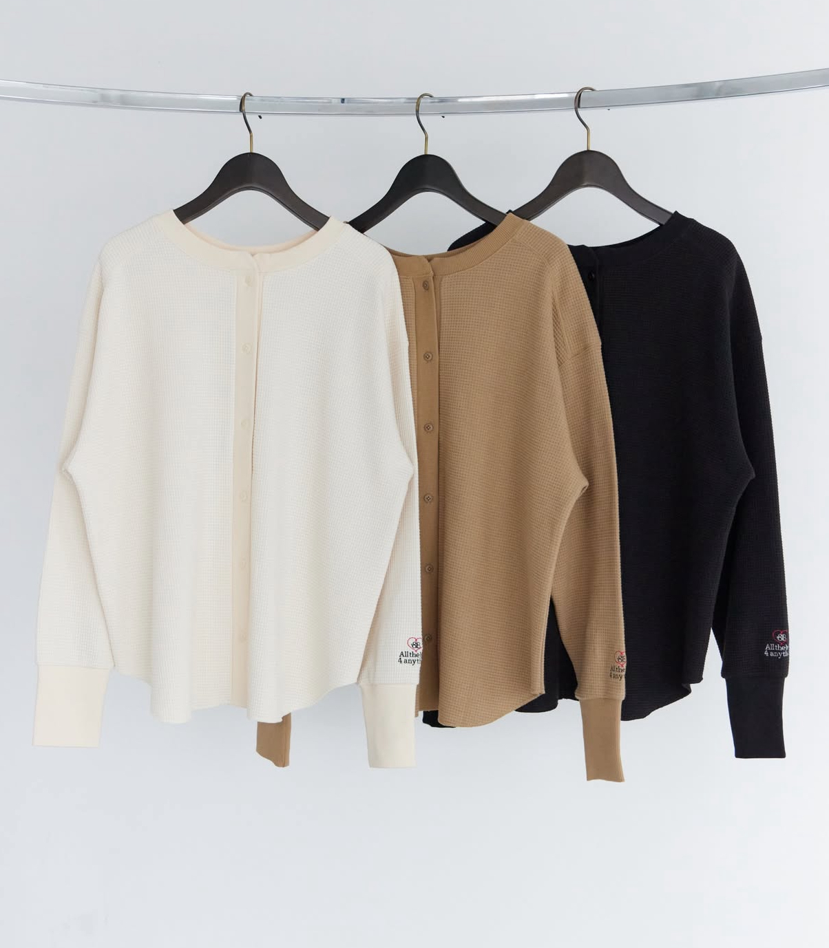 柔らかな素材感と、袖に施されたさりげない刺繍がスタイリングのアクセントに。