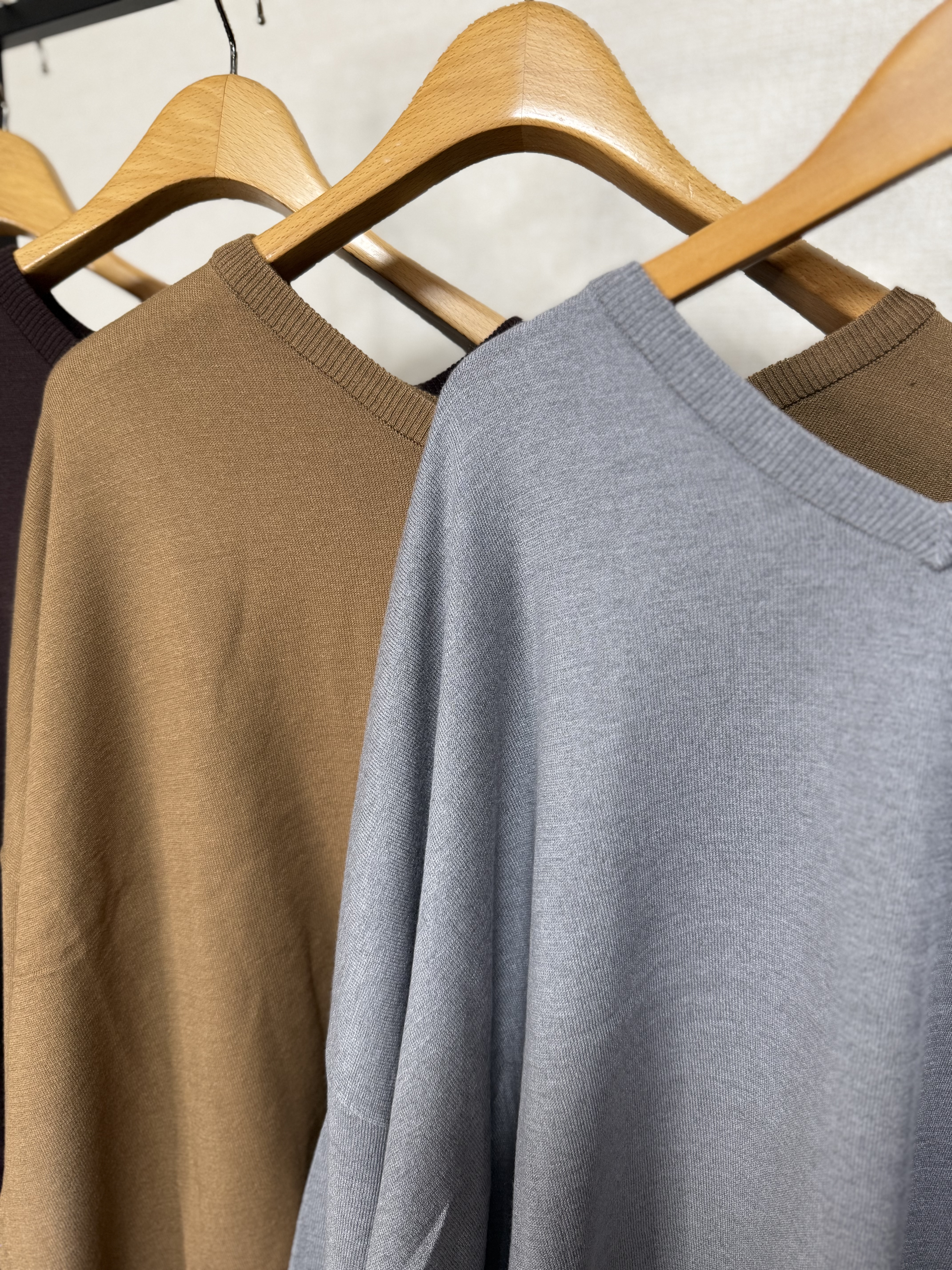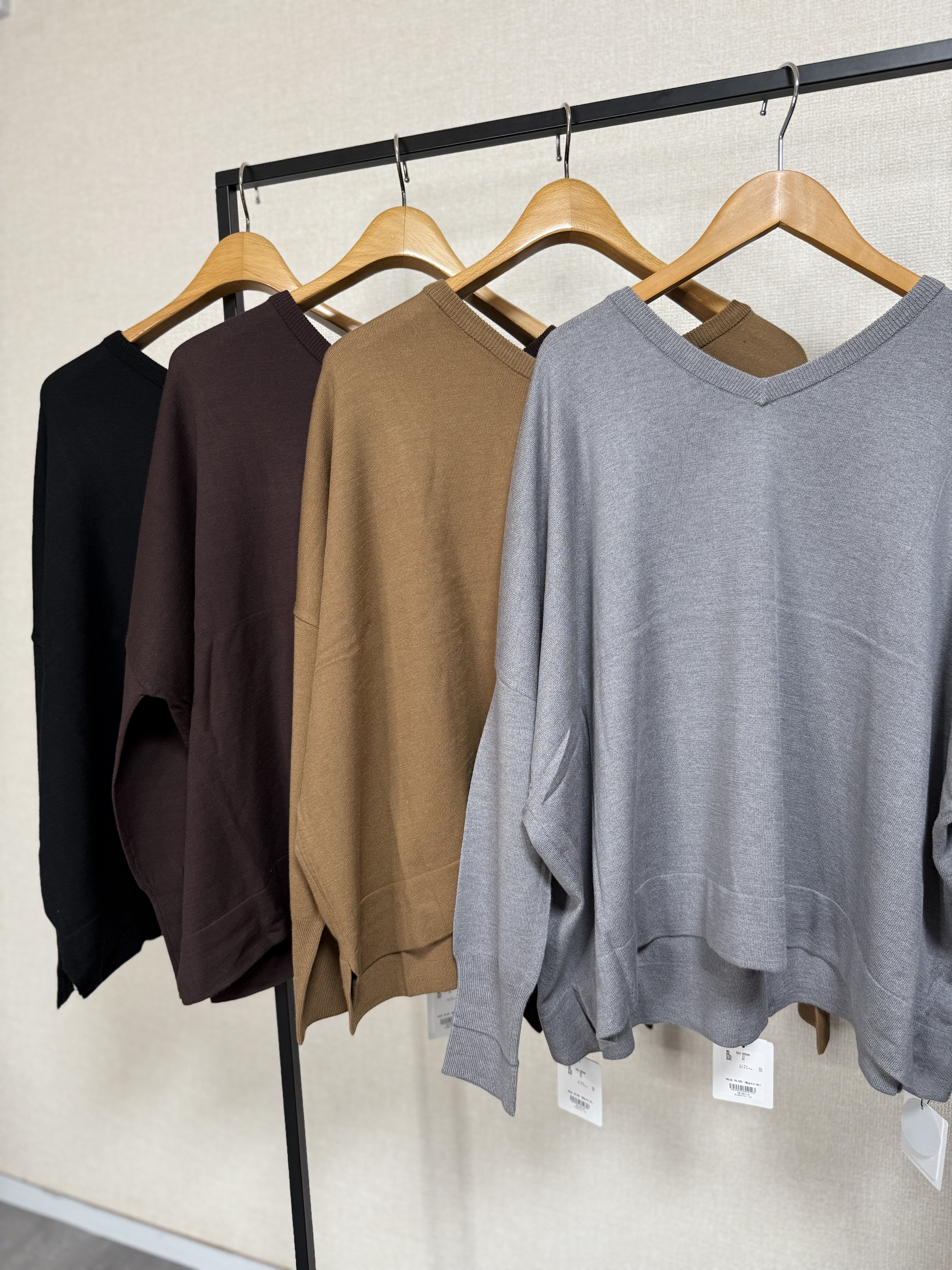 cloche グレーベージュラスト1点づつ 前後2way Vネックロゴニット 5548