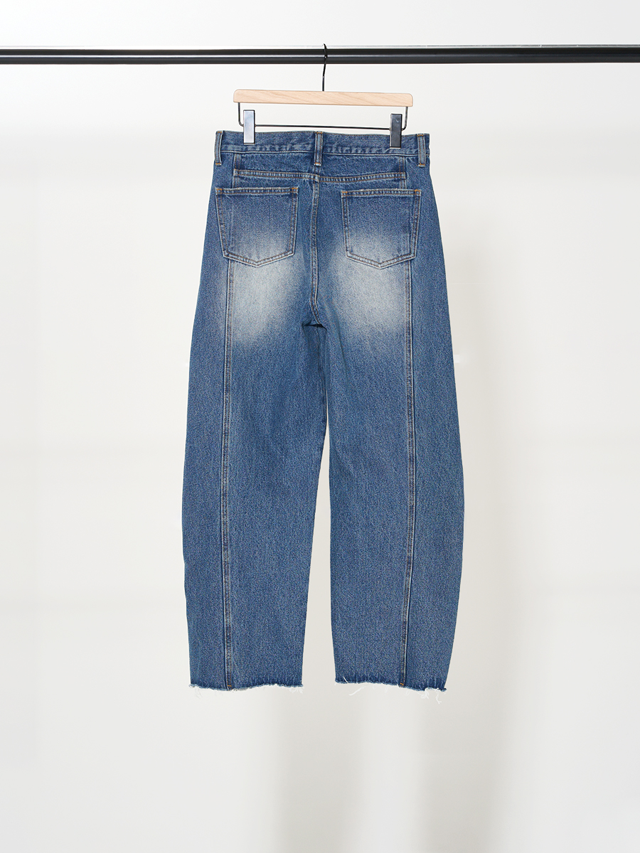 膝に入れたタックで作るユニークなシルエットが特徴のデニムパンツです。