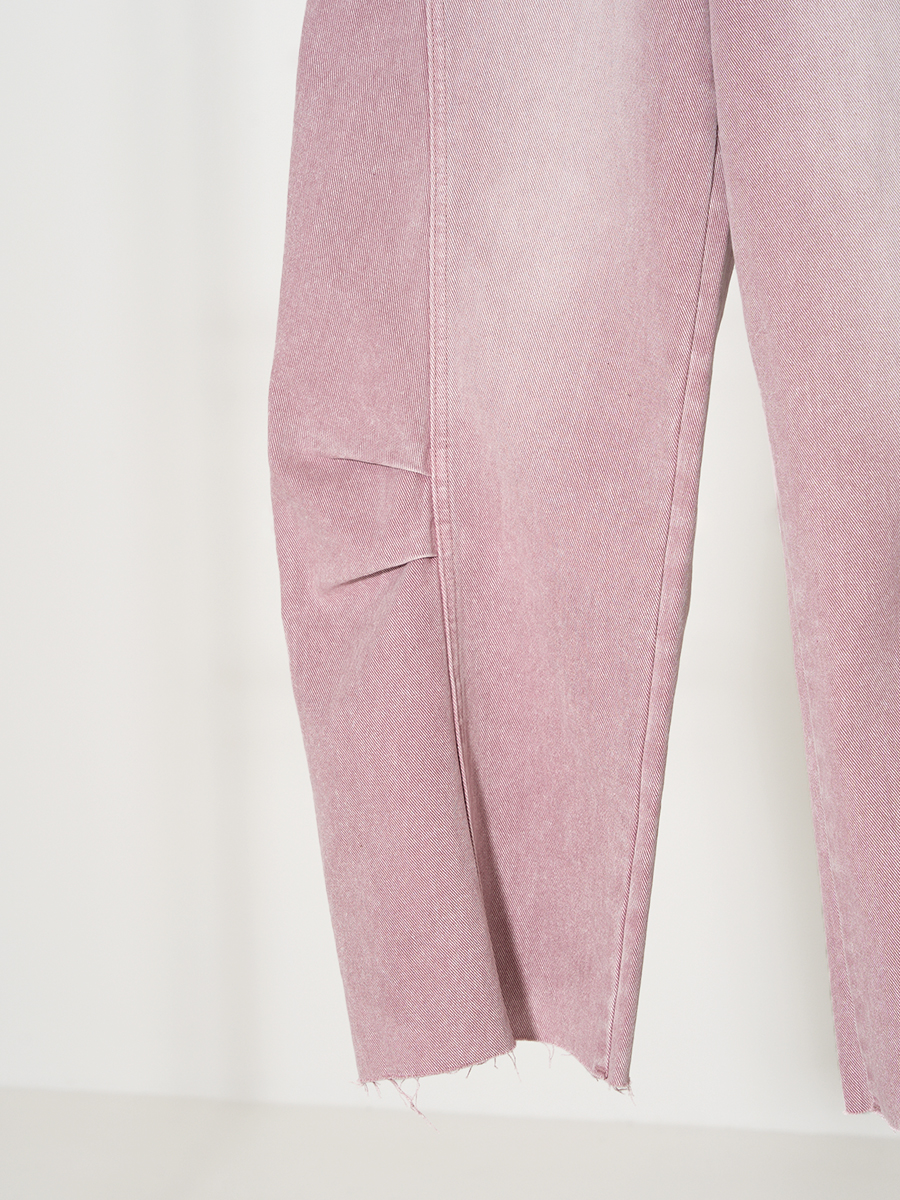 合わせる色を選ばない定番のデニムカラーと、製品染め+擦り加工で表現した絶妙なピンクカラーの2色展開です。