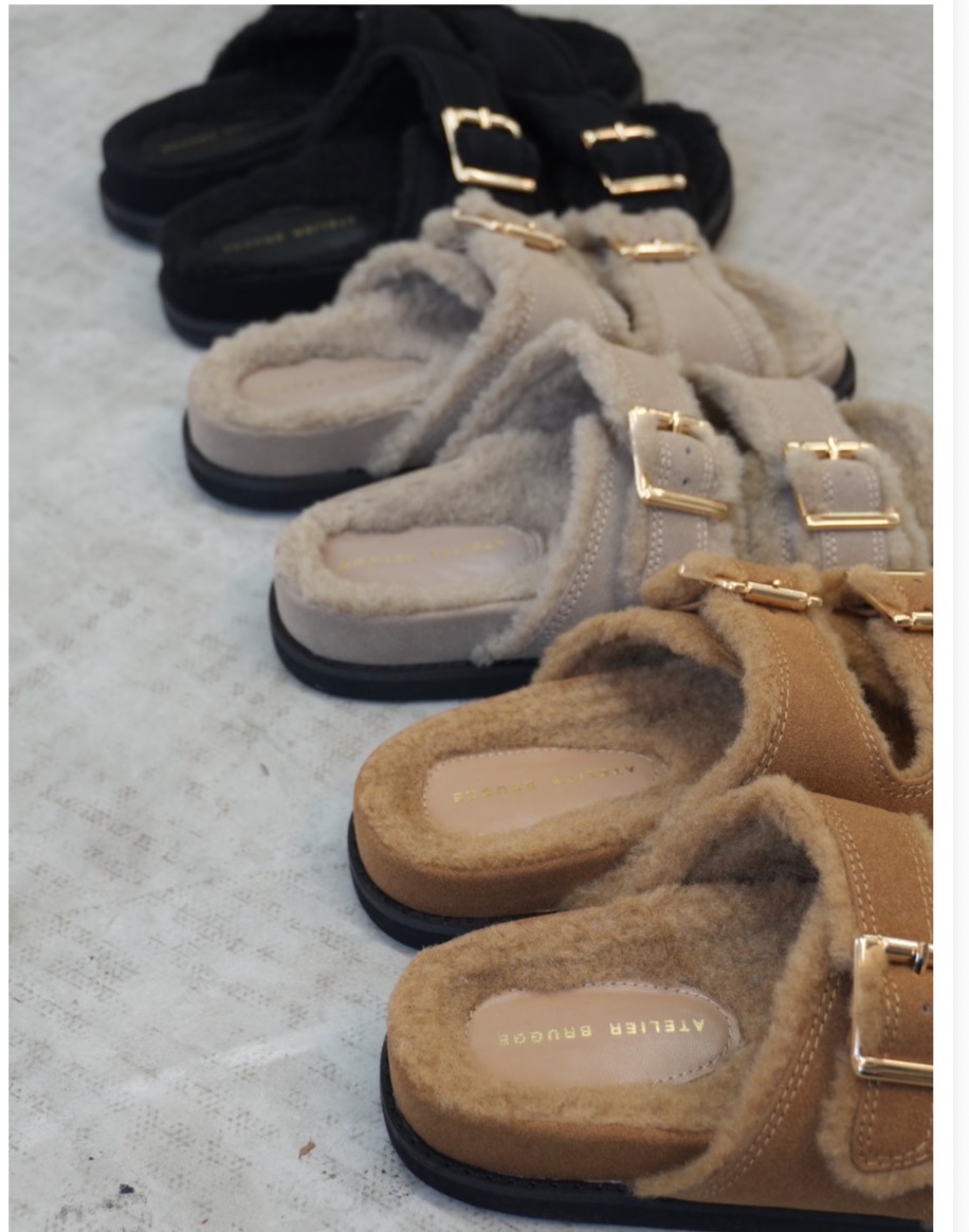 ATELIER BRUGGE ご予約 W buckle fur sandals 26KS-39 納期6月中旬~7月中旬