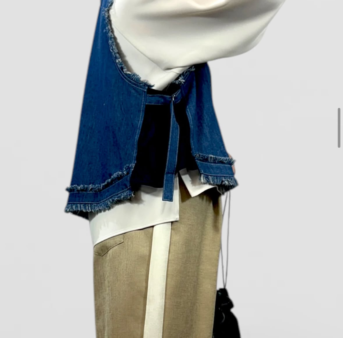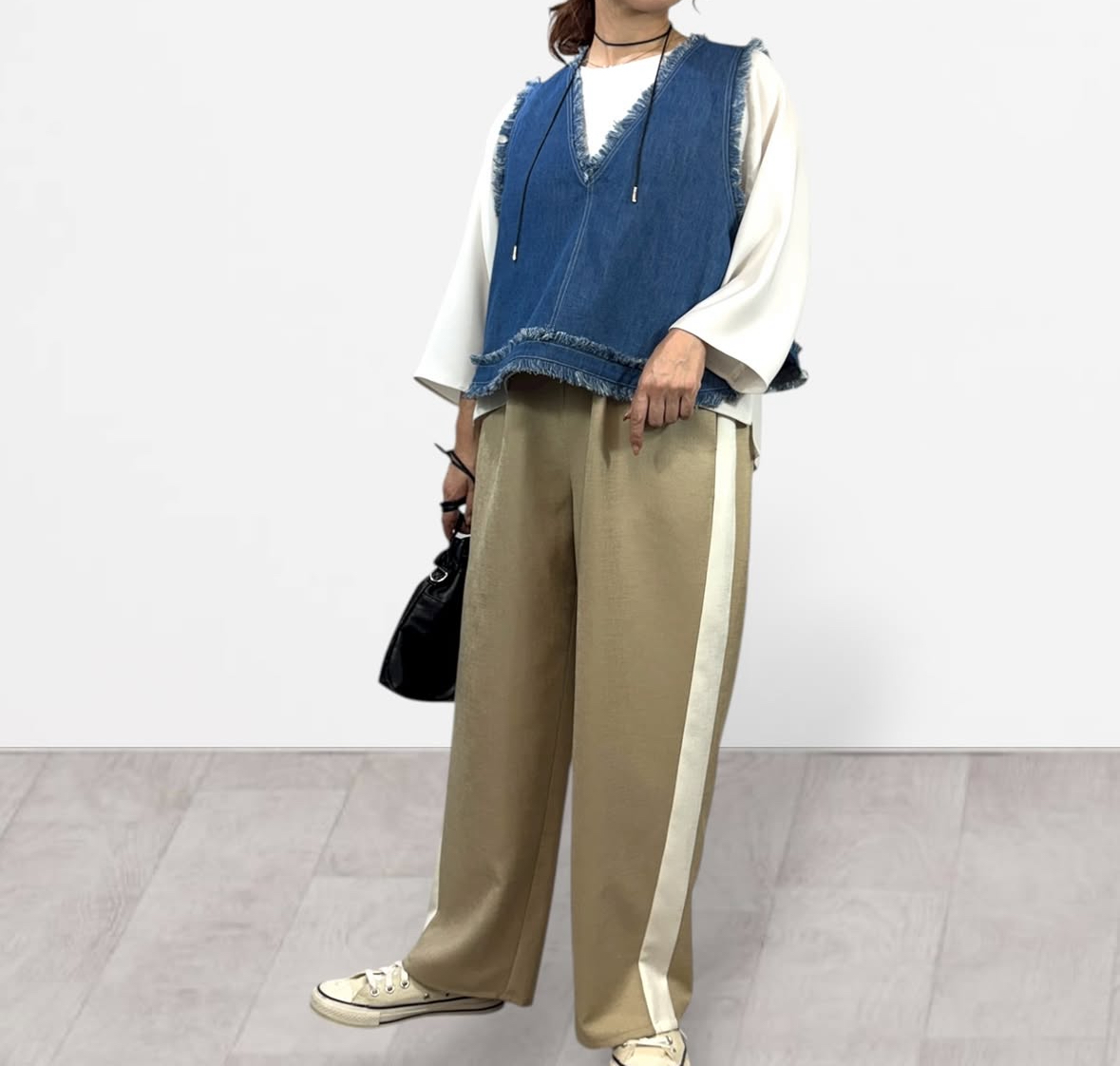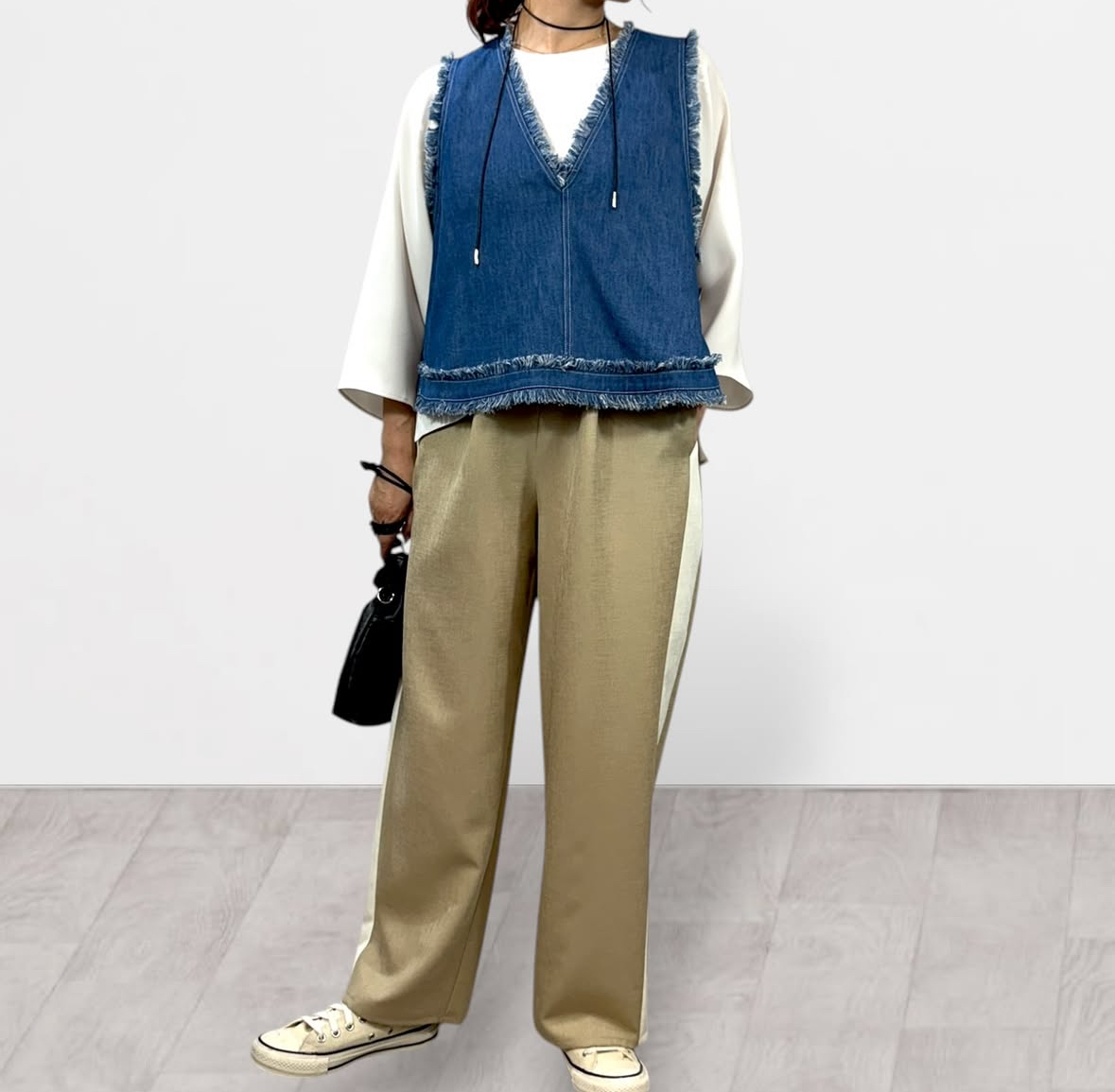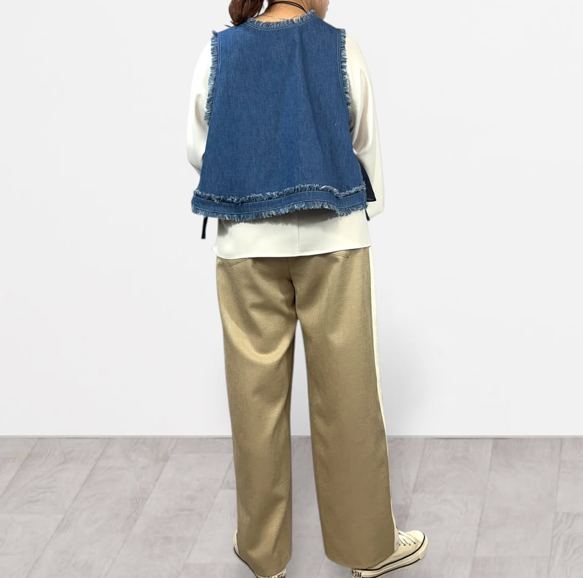 qtume リメイク風デニムコンビベスト 612-25054