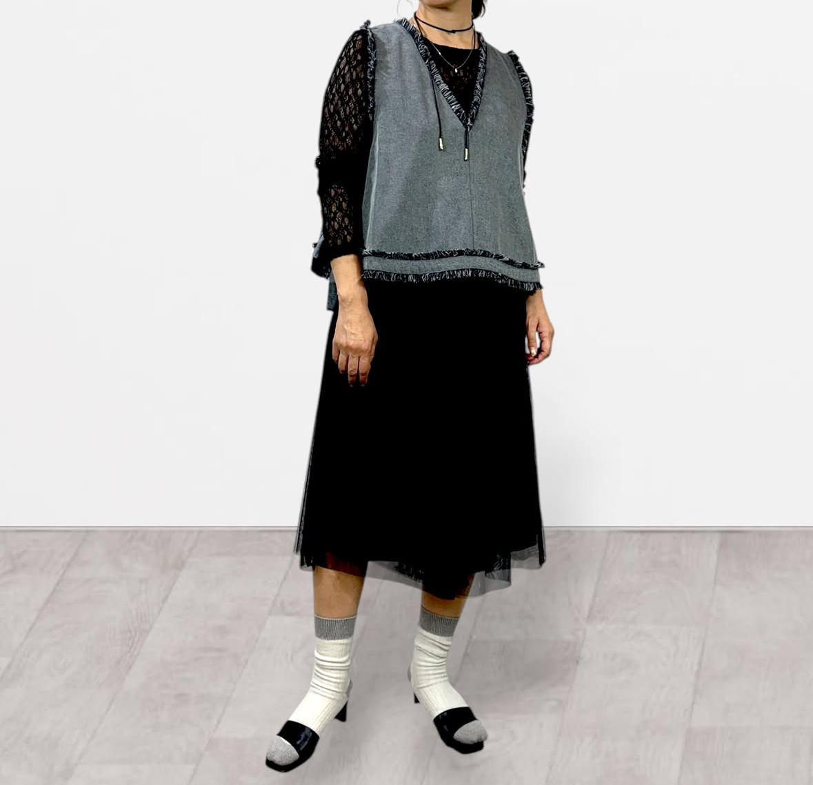 ・フリンジをあしらったVネックベスト