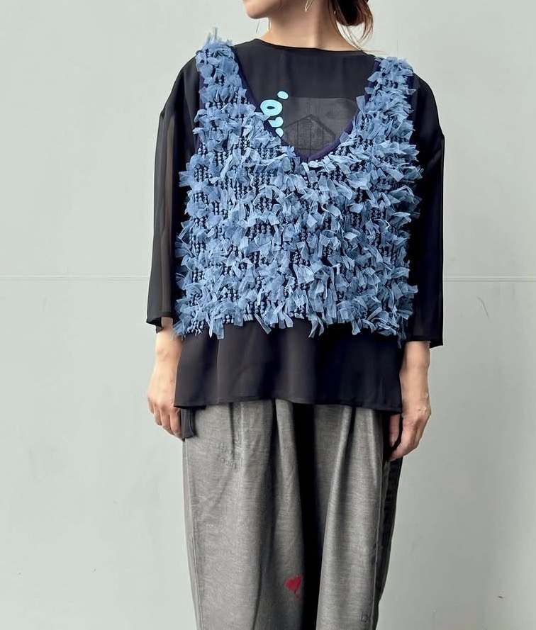 メーカー完売 ブルーラスト1点 CHU CHU-FRINGE 2way KNIT-COMBI VEST 5704