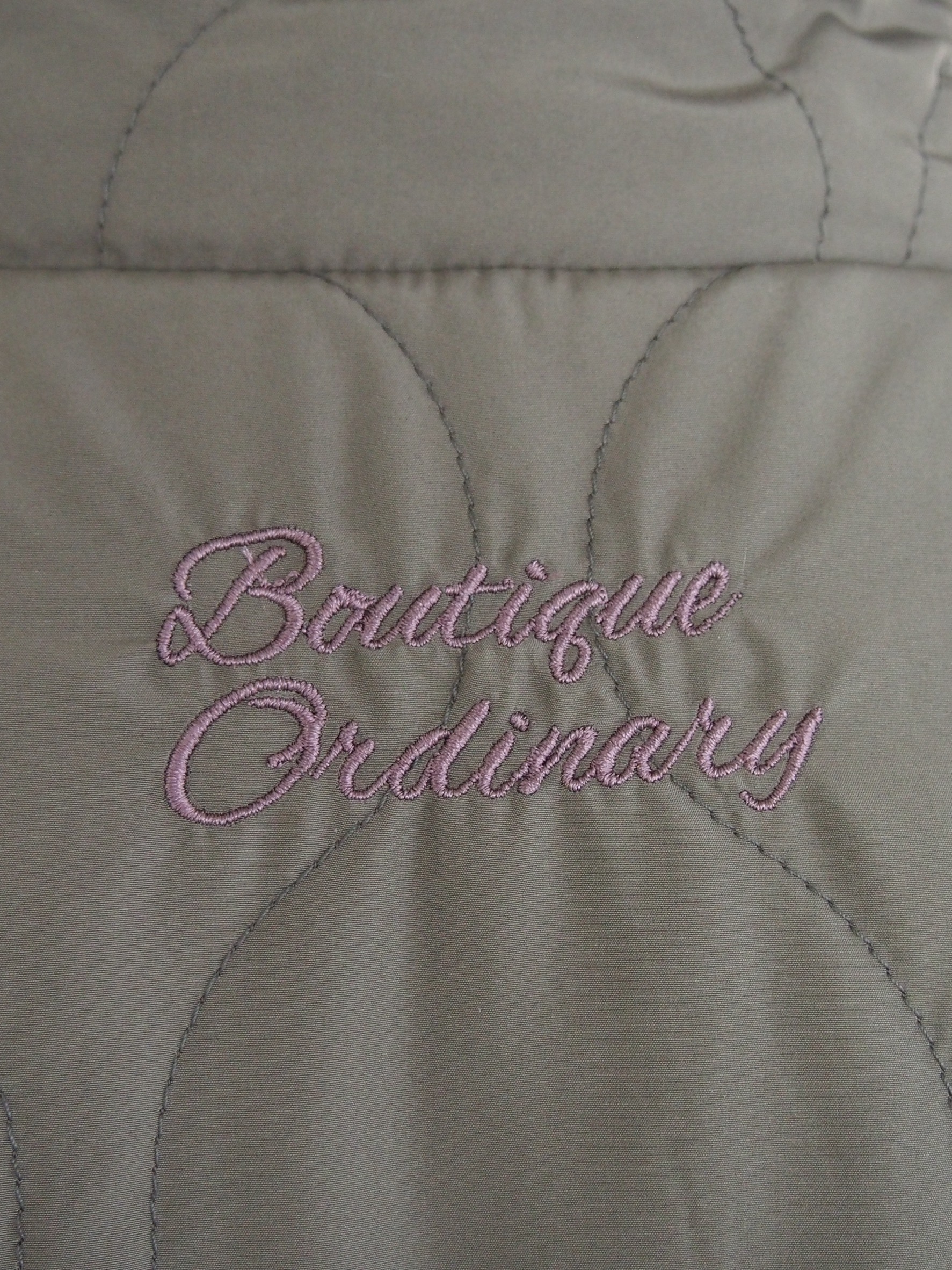 片面はマットな質感でソフトなポリエステルタフタにヘチマ柄キルティングを施した素材を使用。
