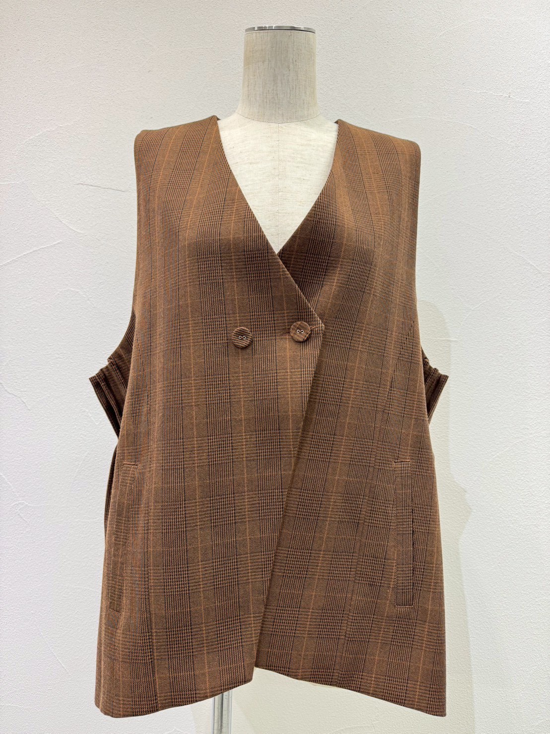 cyantokyo26awご予約 アームプリーツグレンチェックベスト 604492 納期8月初旬~8月下旬
