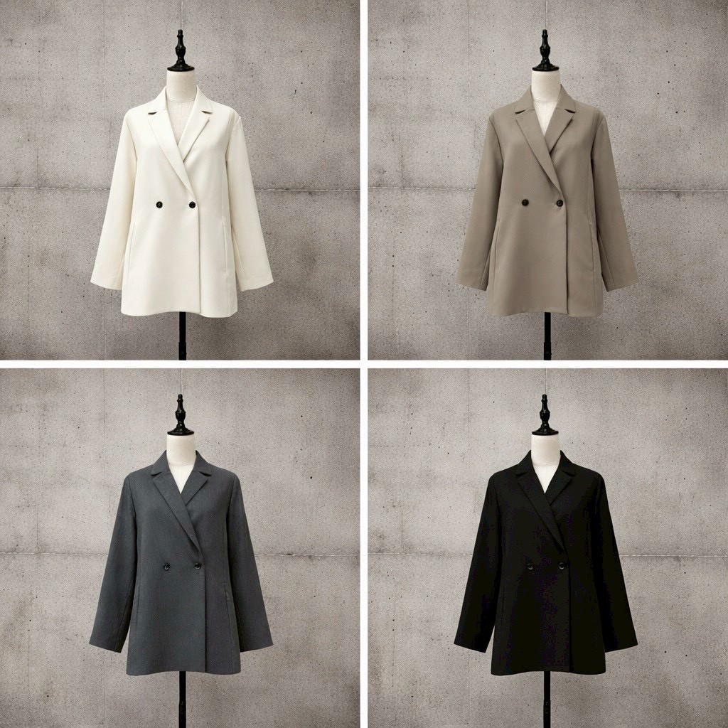ゆったり感のあるシルエットでダブルのテーラードタイプのジャケット。