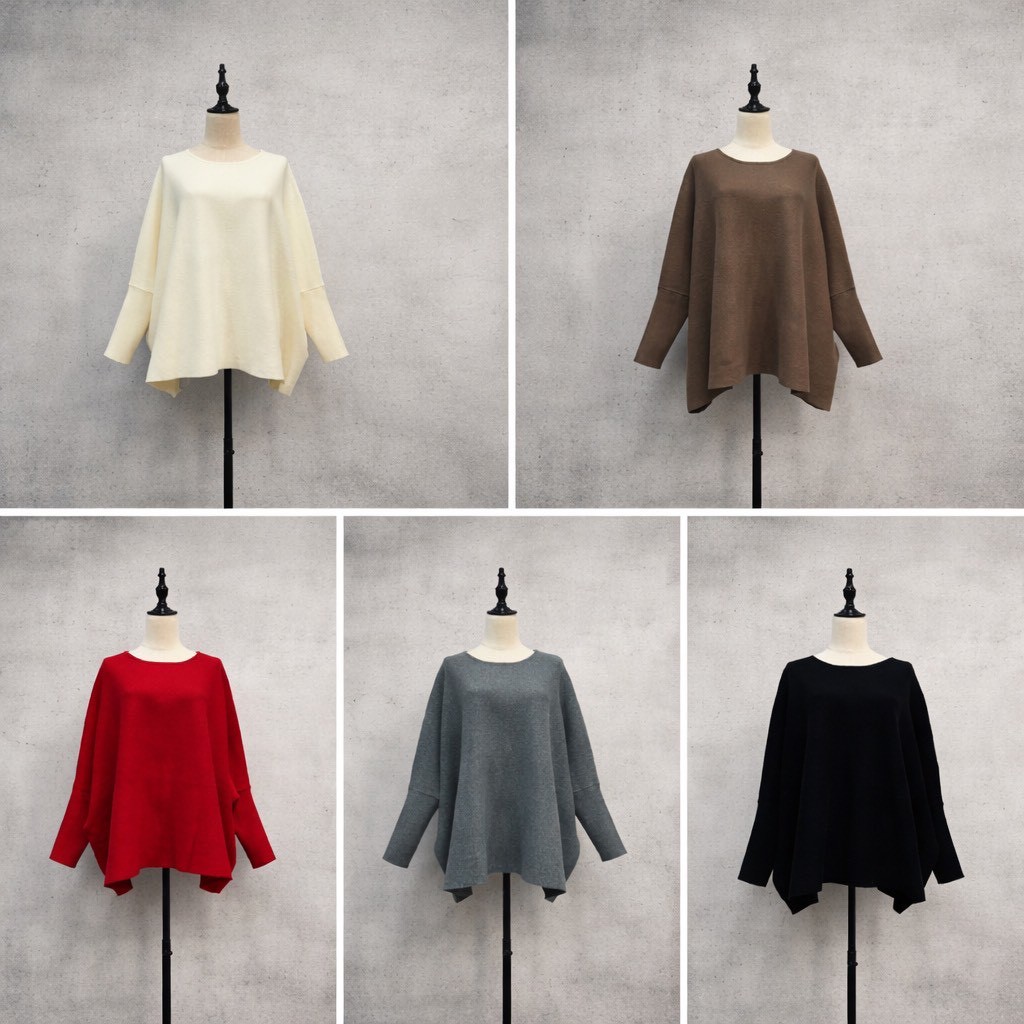 ワイドシルエットが可愛いトップスです。張りのある素材感で着用した時のシルエットが綺麗に出ます。