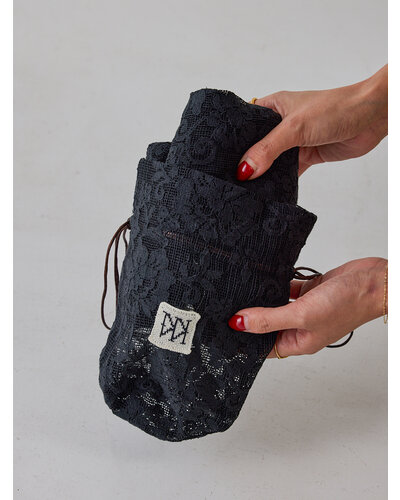 総レースのフーディシャツを、同素材で仕上げた巾着袋に収納できるポータブルレースフーディ。