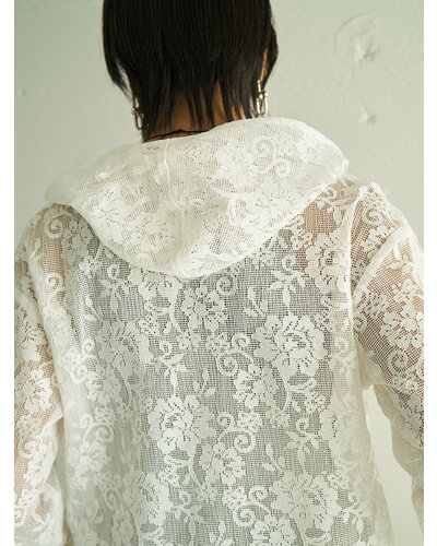 繊細なレースをあえてフーディデザインに落とし込むことで、甘さを抑えたスポーティで今季らしい表情に仕上げました。