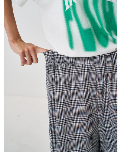 シボ感のあるチェック柄の生地を使用したワイドパンツです。