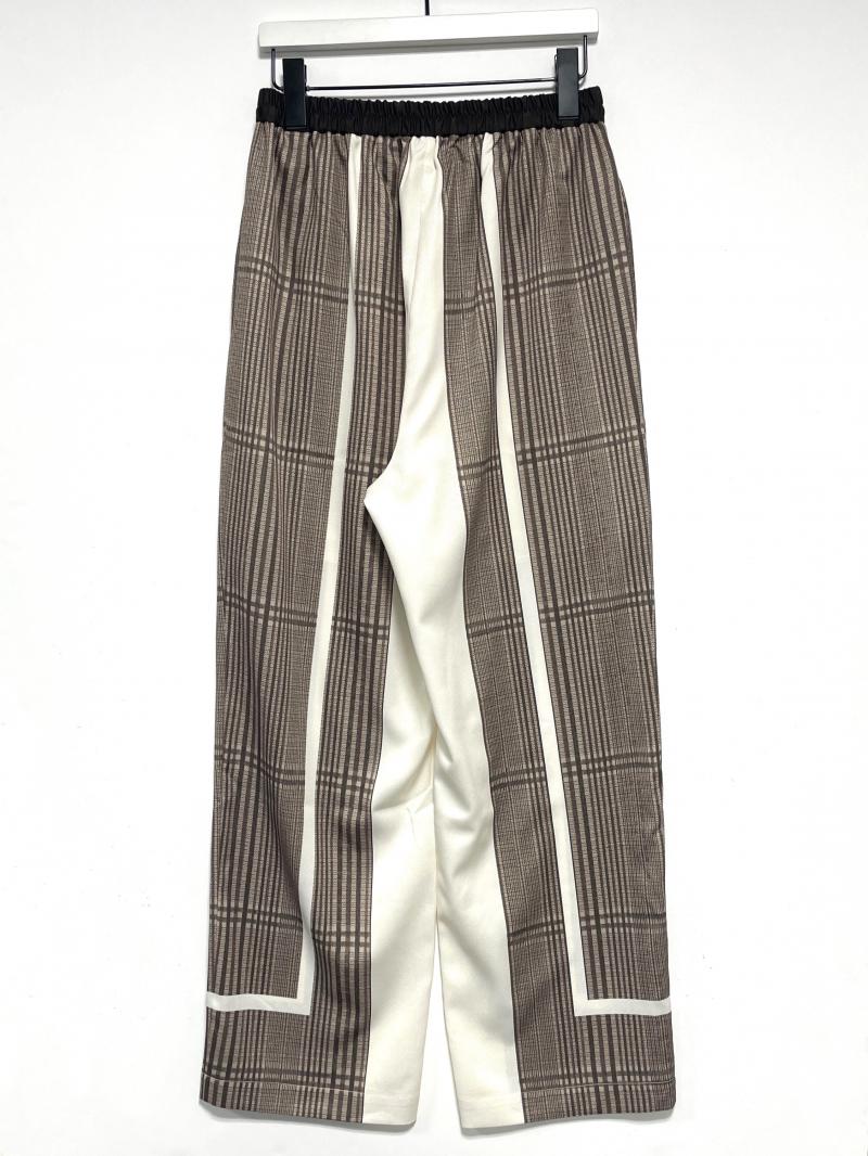 秋らしいグレンチェックにラインを入れた構築的なパネルオリジナルプリントのパンツになります。