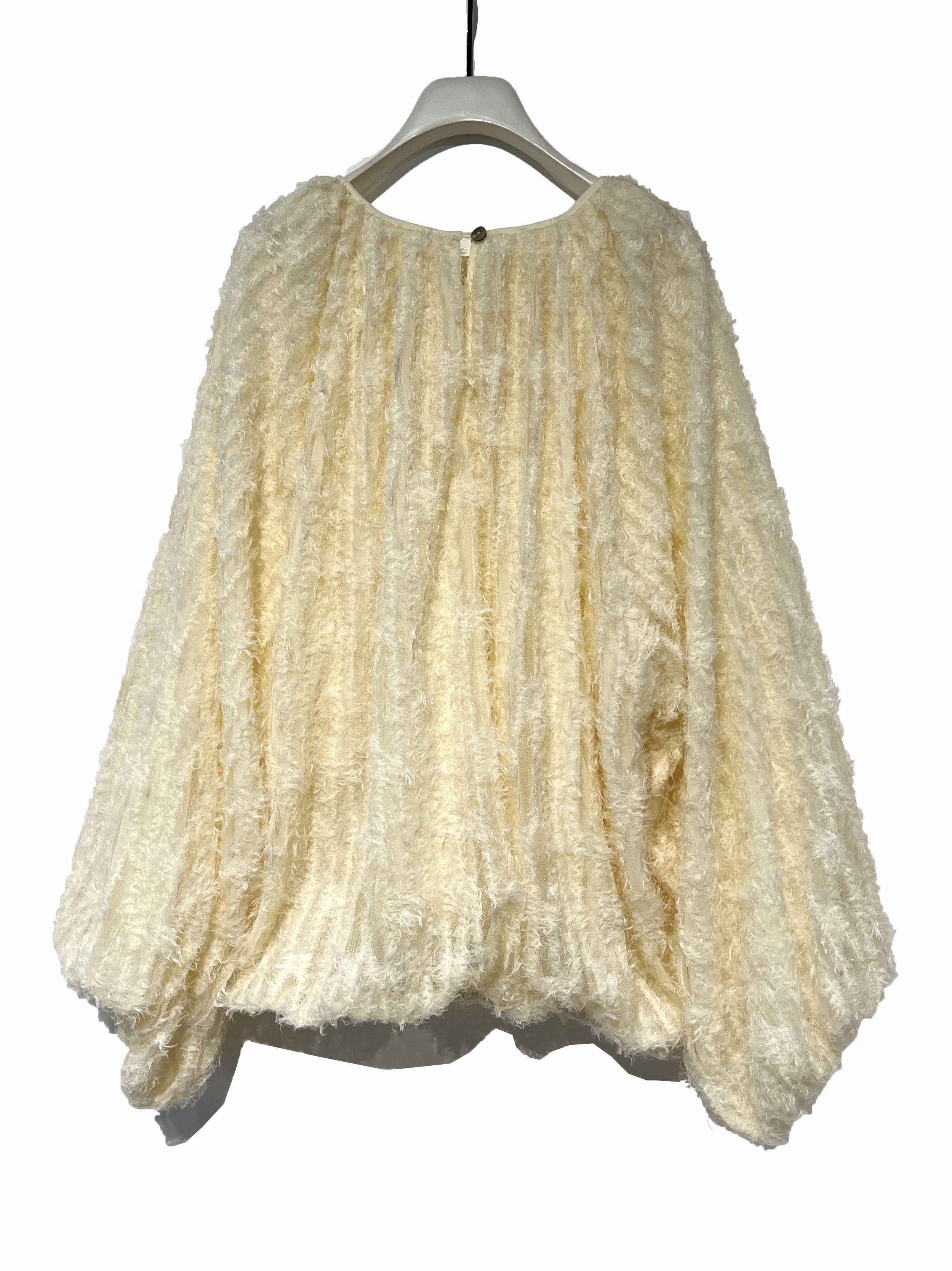 フェザーライクが施されたチュール素材が新鮮なギャザーボリュームBLです。