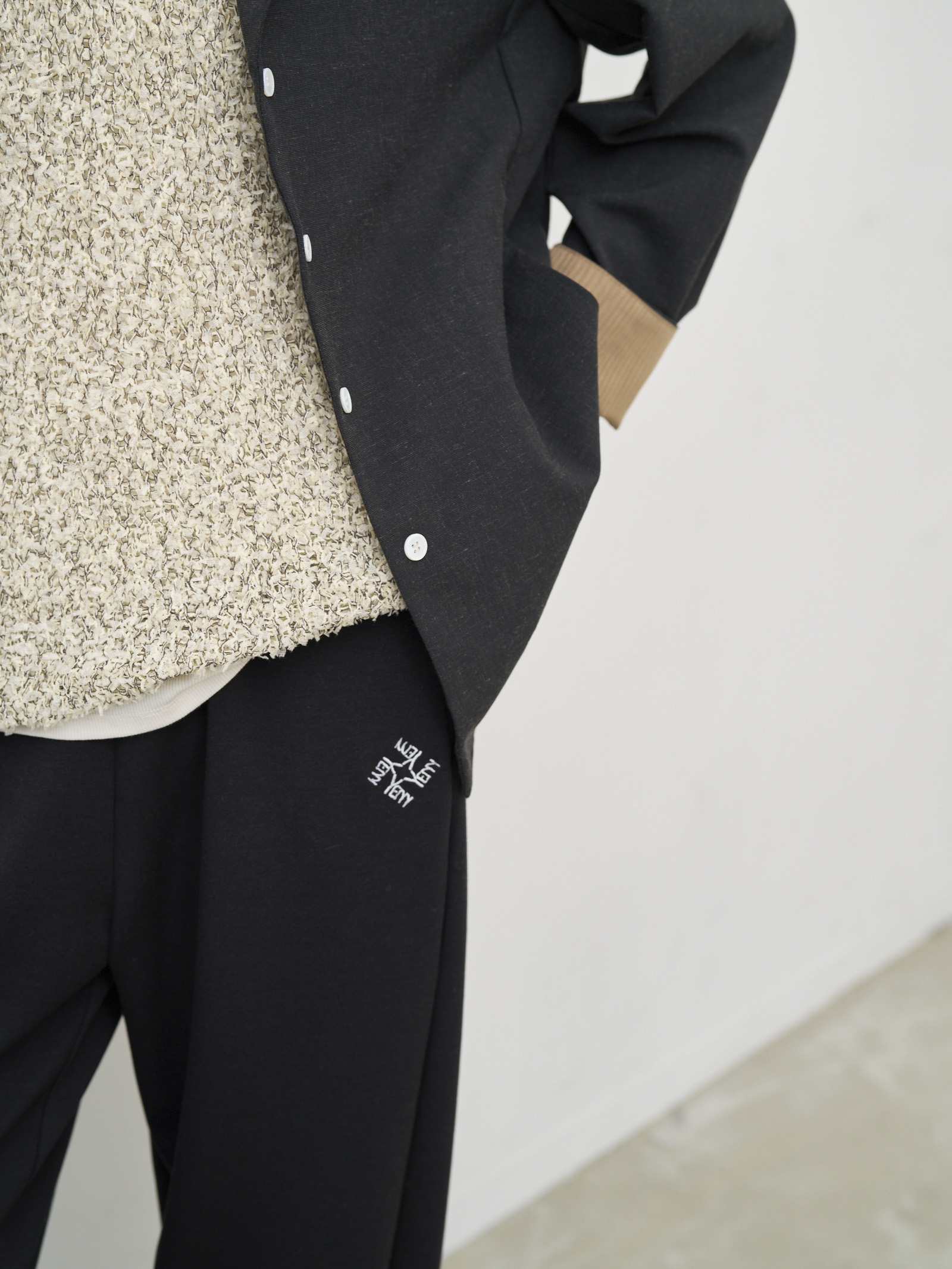 イージーな履き心地を叶えつつ、ベルト無しで内側にゴムが出るウエストの仕様で、きちんと感を出しました。