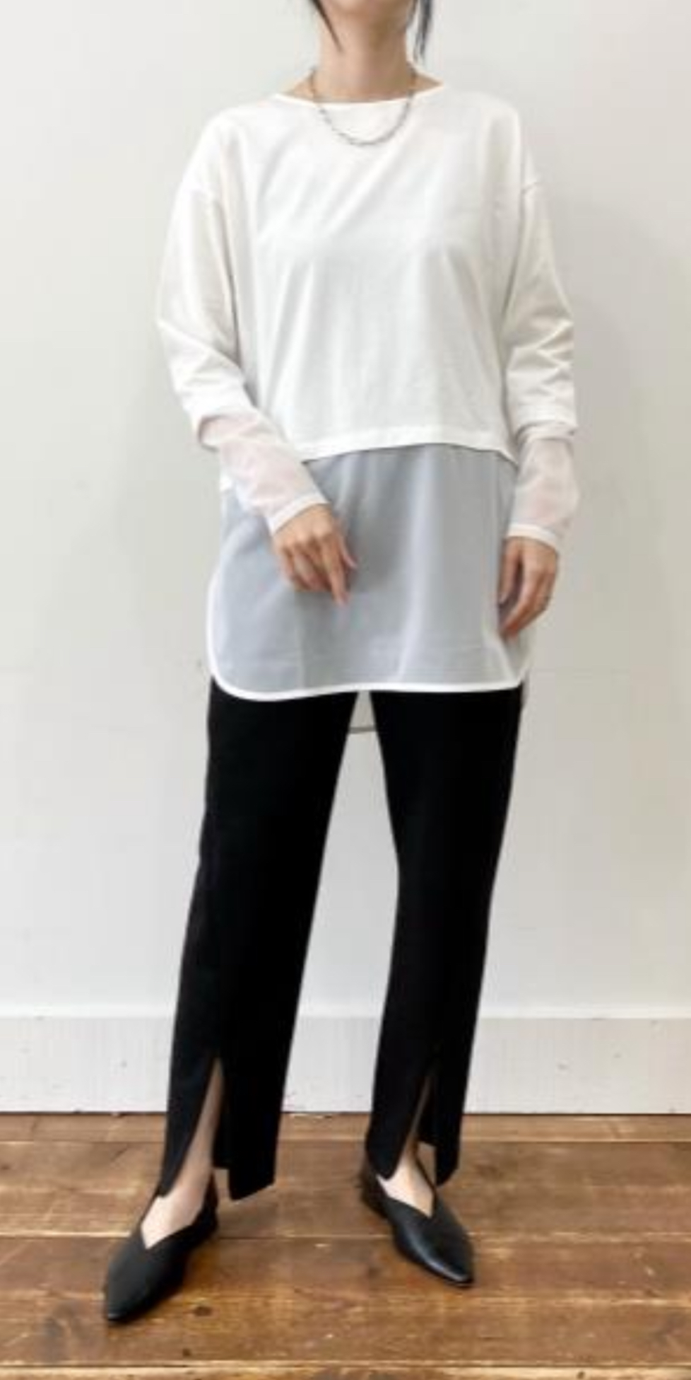 メーカー完売再再再再再再販 オフラスト1点 エクリュブラック再販なし stretch hightwist round long pullover 3205