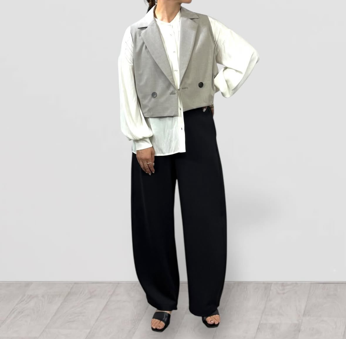 qtume Limblessトロストレッチクロップドスリーブレスジャケット 612-24013