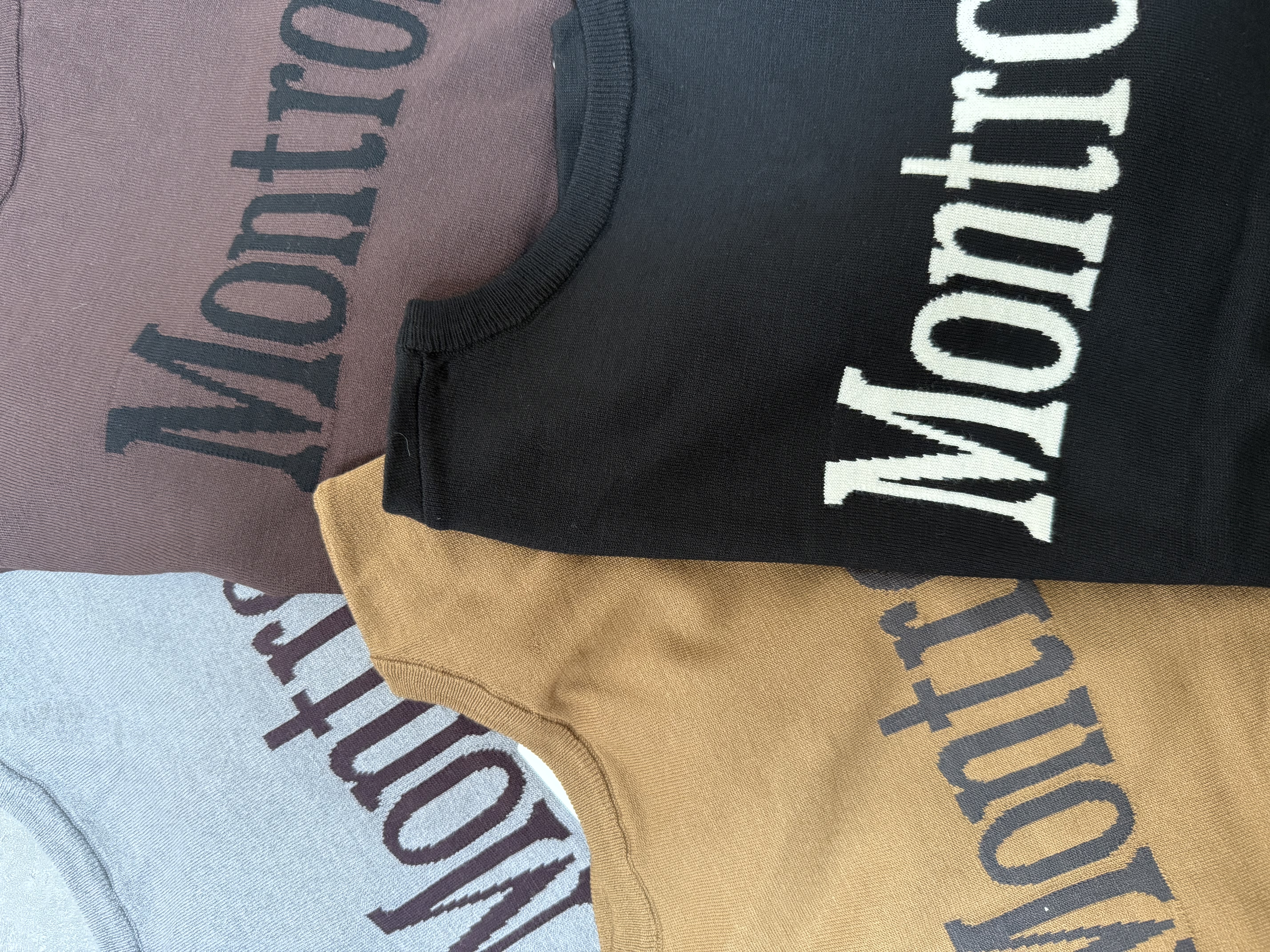 cloche グレーベージュラスト1点づつ 前後2way Vネックロゴニット 5548