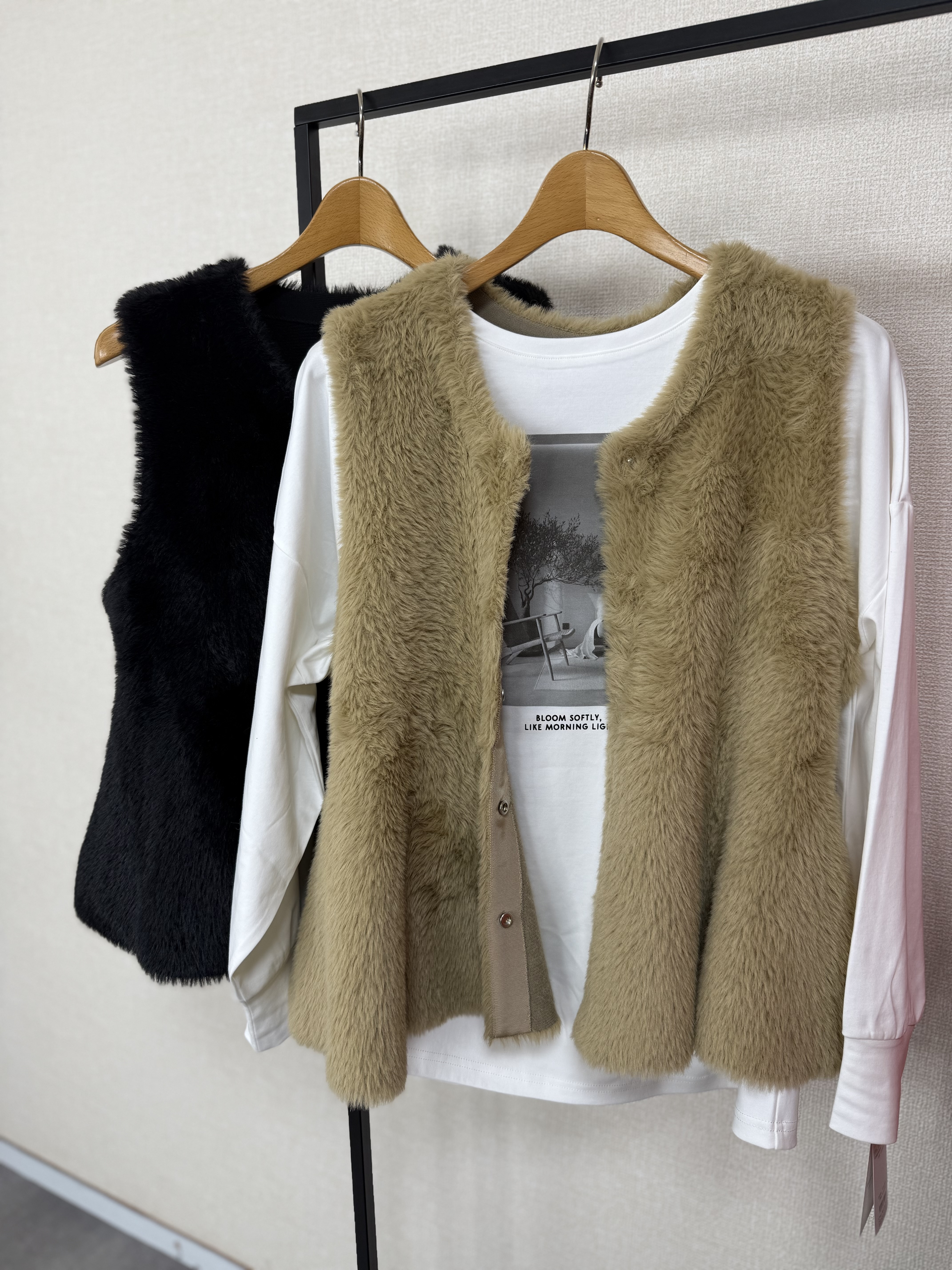 再販ご予約 QTUME フェイクムートンミドルジレ 4501 来週発送